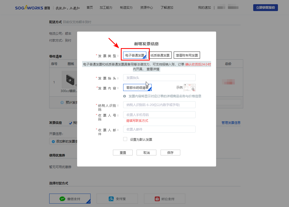6.1 如您勾選【電子普通發(fā)票】,則速加默認(rèn)為您開電子發(fā)票,電子發(fā)票您可在后臺下載